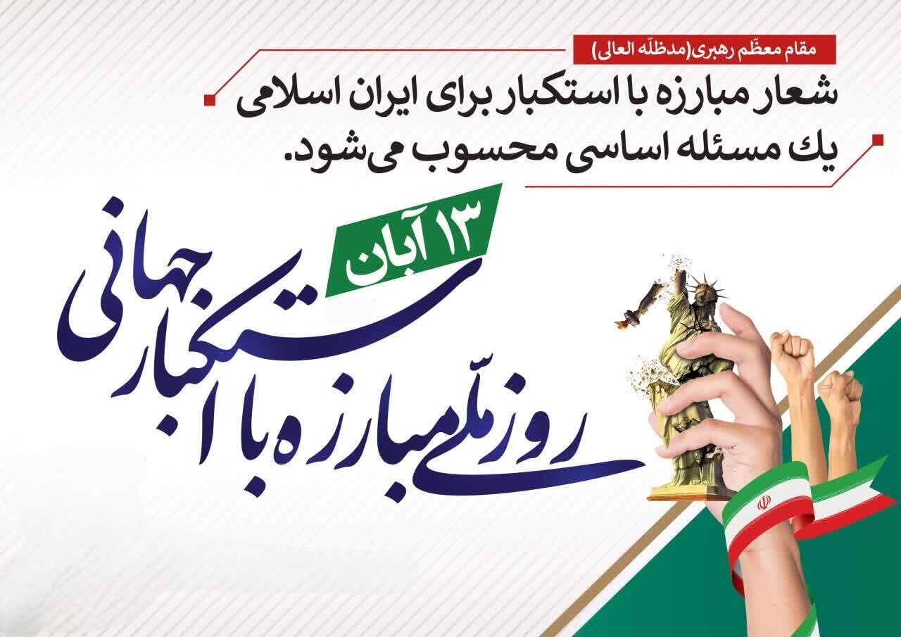 13 آبان، برگ زرینی در تاریخ انقلاب اسلامی ایران است؛ روزی که با سه رخداد سرنوشت‌ساز«تبعید حضرت امام خمینی (ره) در سال ۱۳۴۳، شهادت دانش‌آموزان در سال ۱۳۵۷، و تسخیر لانه جاسوسی آمریکا در سال ۱۳۵۸»به نماد ایستادگی، اتحاد و مقاومت ملت ایران در برابر استکبار جهانی بدل شد.