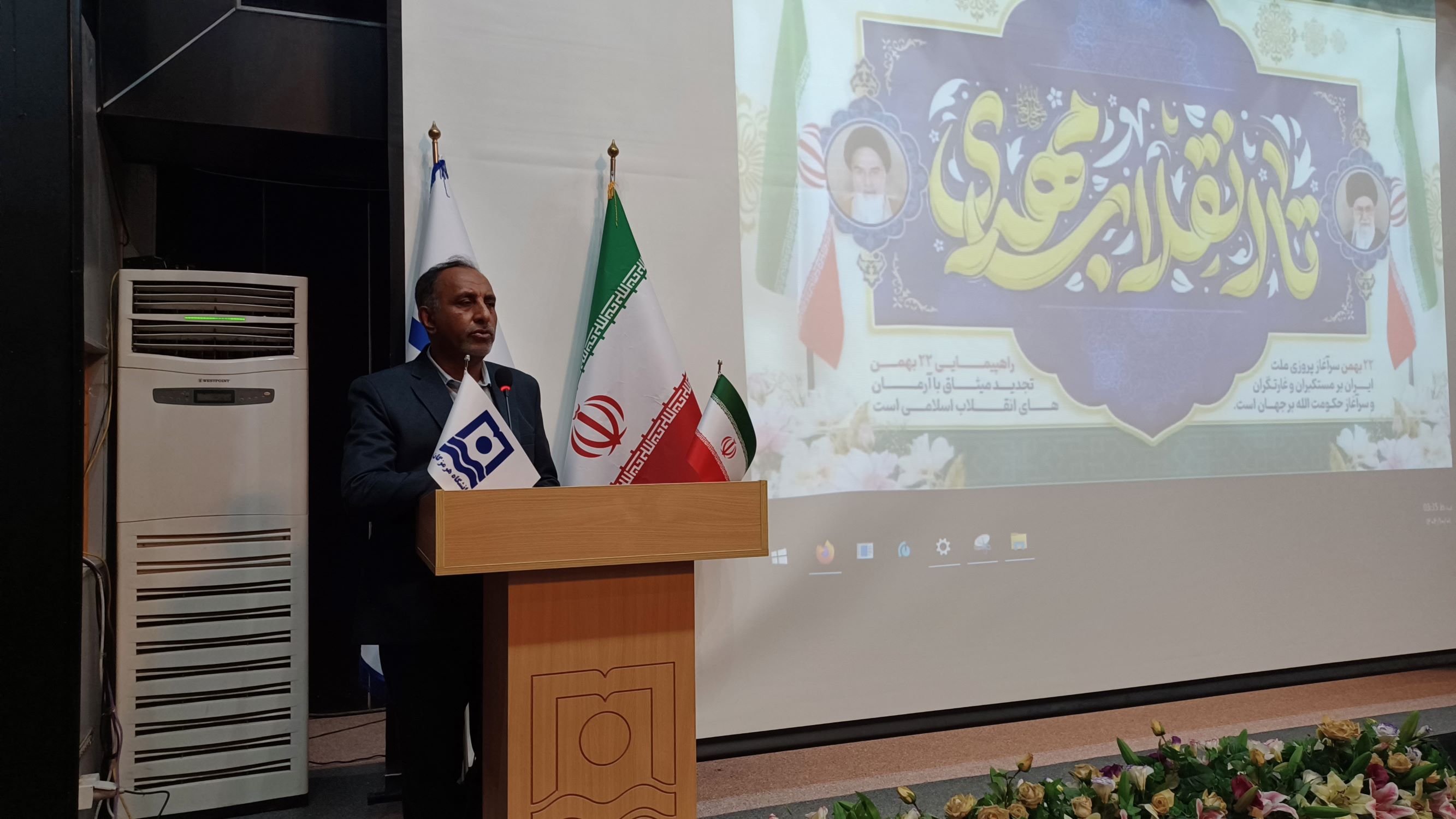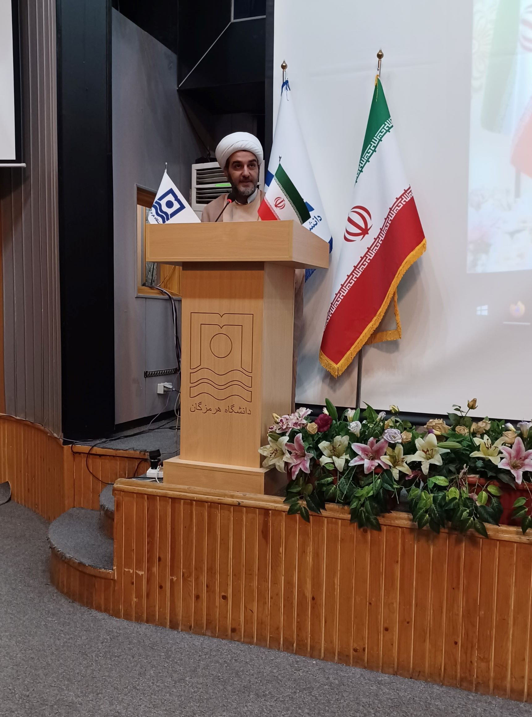 این مراسم با تلاوت آیاتی چند از کلام‌الله مجید و پخش سرود ملی جمهوری اسلامی ایران آغاز شد. در ادامه، جناب آقای دکتر کریمی، معاون فرهنگی و اجتماعی دانشگاه هرمزگان، ضمن تبریک اعیاد فرخنده ماه شعبان، به‌ویژه میلاد باسعادت حضرت ولی‌عصر (عج) و همچنین ایام‌الله دهه فجر، با خوشامدگویی به حاضران، بر ضرورت پاسداشت این ایام سرنوشت‌ساز و نقش‌آفرینی دانشگاهیان در صیانت از ارزش‌های انقلاب اسلامی تأکید کرد.