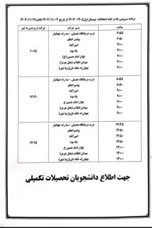 برنامه سرویس ایاب و ذهاب دانشجویان در ایام امتحانات