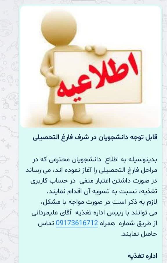 قابل توجه دانشجویان در شرف فارغ التحصیلی