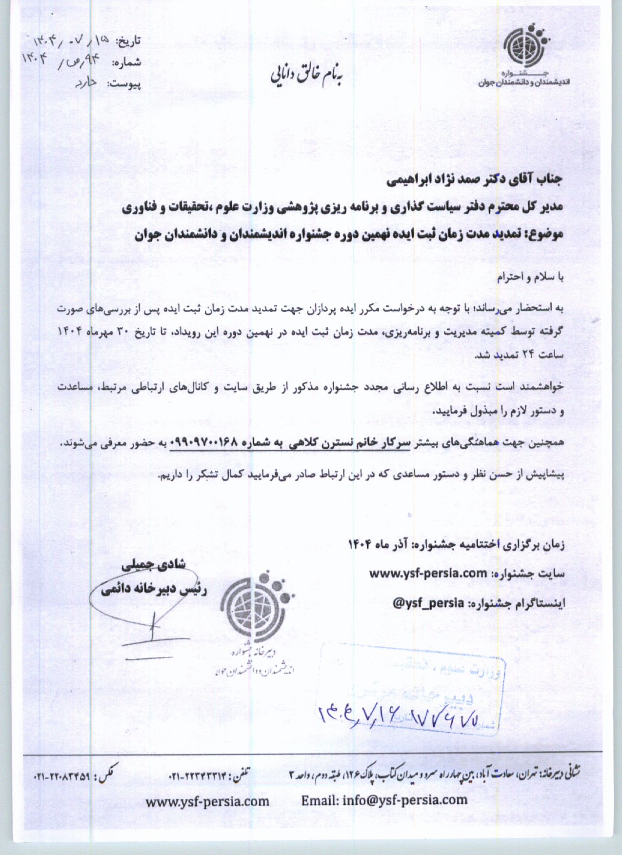 نهمین دوره جشنواره اندیشمندان و دانشمندان جوان