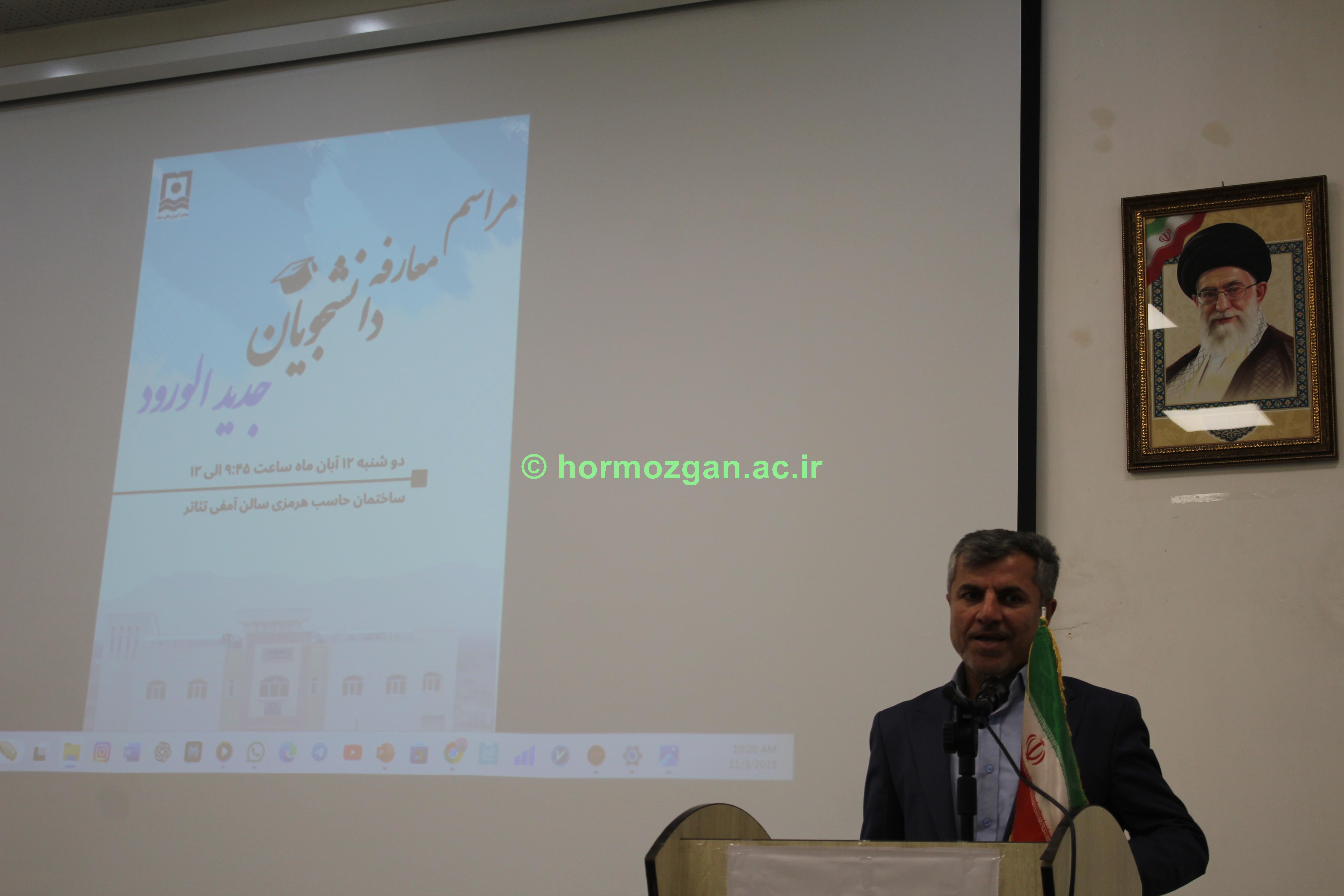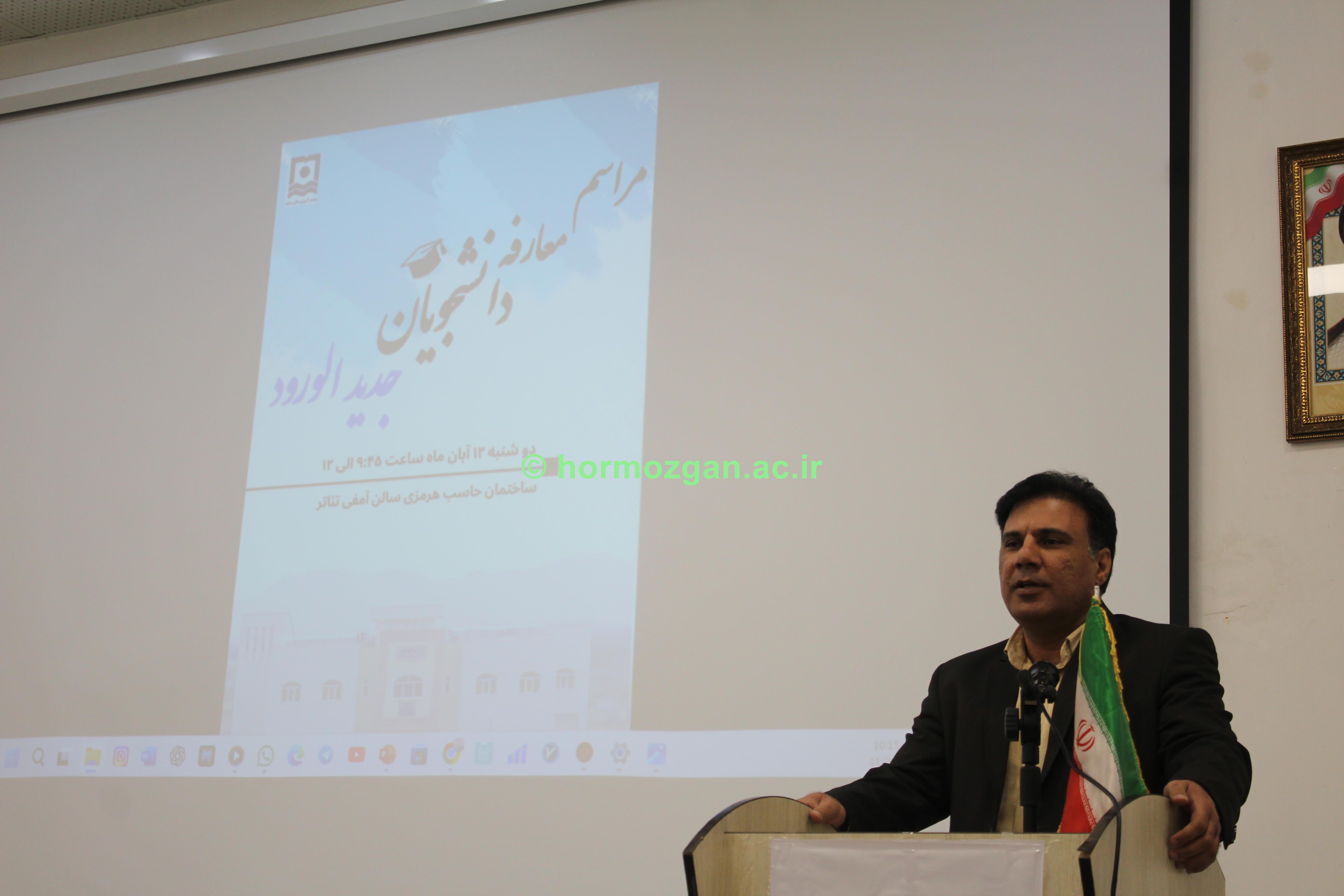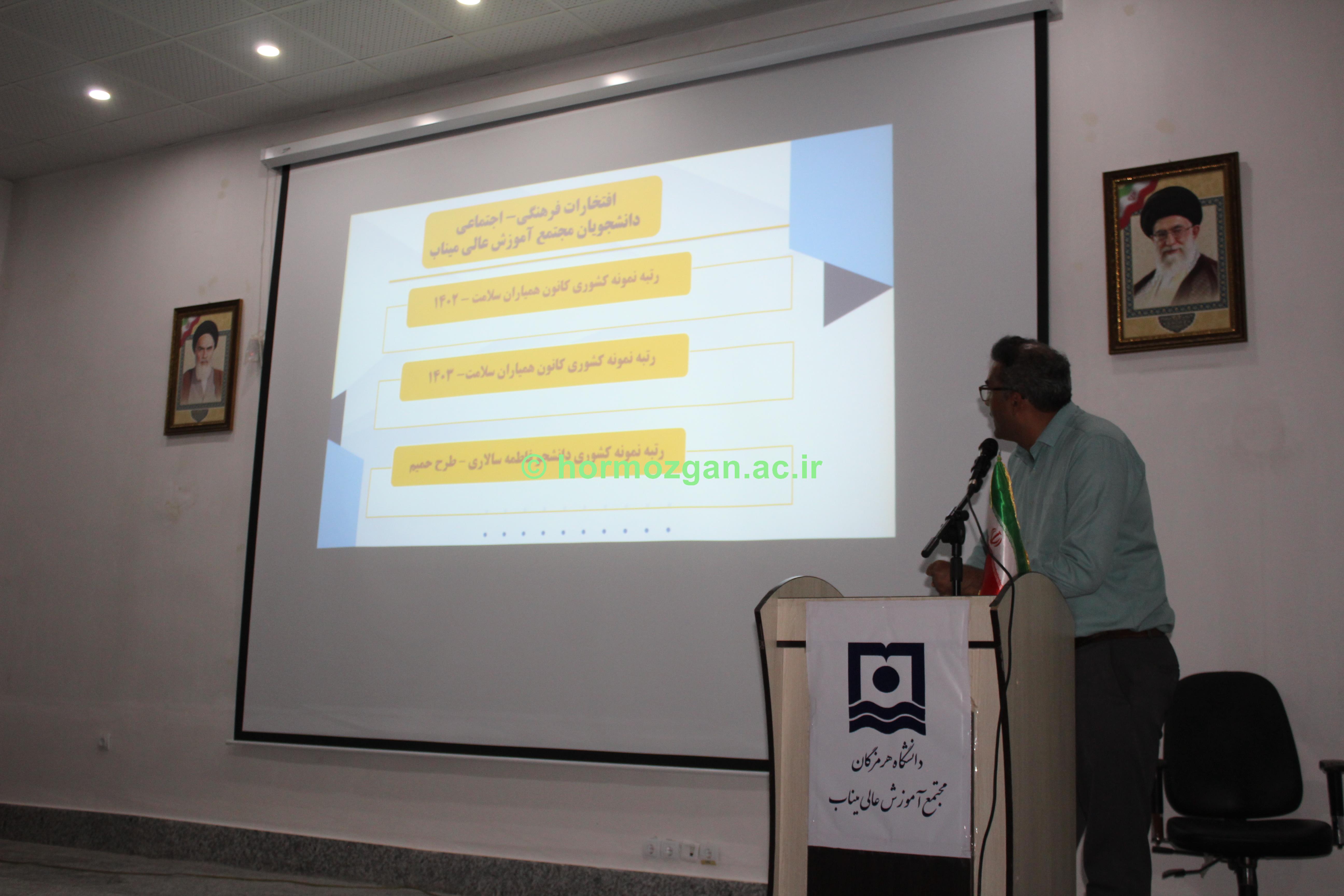 در ابتدای مراسم، معاون آموزشی، پژوهشی و دانشجویی ضمن خیرمقدم به دانشجویان، آغاز فصل جدیدی از دوران تحصیلی آن‌ها را در خانواده بزرگ مجتمع آموزش عالی میناب تبریک گفت و اظهار داشت: «دوران دانشجویی فرصتی ارزشمند برای رشد علمی، فرهنگی و شخصیتی است و دانشگاه همه ظرفیت خود را برای حمایت از استعدادهای جوان به‌ کار خواهد گرفت.»